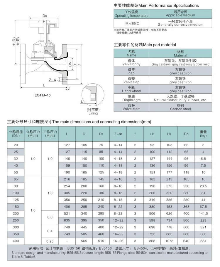 EG41J 英標(biāo)襯膠隔膜閥性能規(guī)范:
