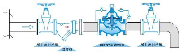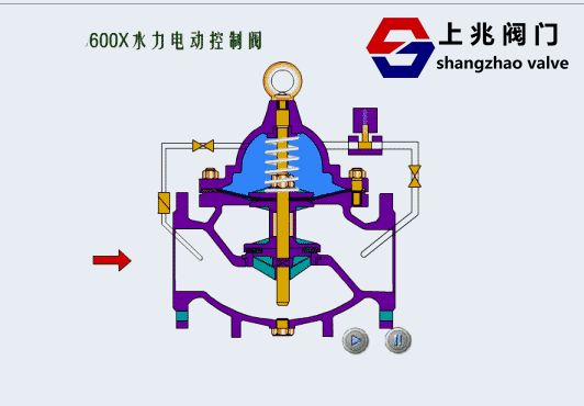 當(dāng)電磁導(dǎo)閥關(guān)閉時(shí),主閥控制室的水不能流出,控制室升壓,推動膜片關(guān)閉主閥。