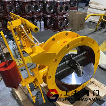 DMF重錘式煤氣緊急切斷閥是法蘭連接、杠桿式啟閉閥,主要由電磁杠桿裝置組成、彈簧及配重、閥體、閥板及軸等零件。